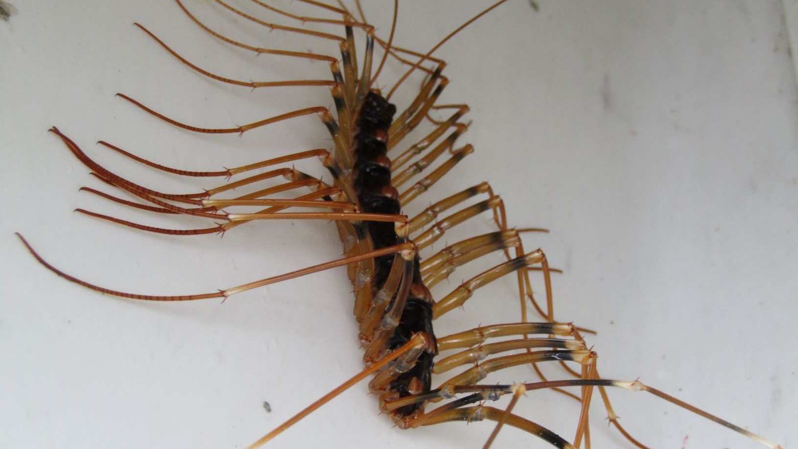 ニホントカゲ6/7(JPG:167KB) (校舎の廊下に現れました。15センチもある大物でした。)