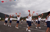最後は,見里集落の皆さんと一緒に八月踊りをしました。運動会を盛り上げてくださり,ありがとうございました。今年の優勝は,赤組でした。地域の部は川内集落の優勝でした。