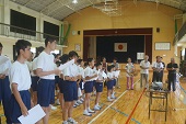 住用町の4つの学校で合同の相撲・球技大会です。男子は,相撲,女子はソフトバレーボールをしました。姉妹都市のナカドゥチェス市(アメリカ)の子も飛び入り参戦!町内交流&国際交流,楽しかったです。
